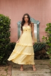 O Vestido longo Água veio para arrasar corações! O seu decote feminino e detalhes atuais, faz do vestido Água o must have desse verão! A saia tem recorte evasê e também possui amarrações na alça, o que facilita o ajuste de altura, além de deixar mais elegante. Pode ser usado de maneira casual no seu dia a dia ou de forma mais sofisticada, dependendo da ocasião. Nas versões off white, rosa e preto.